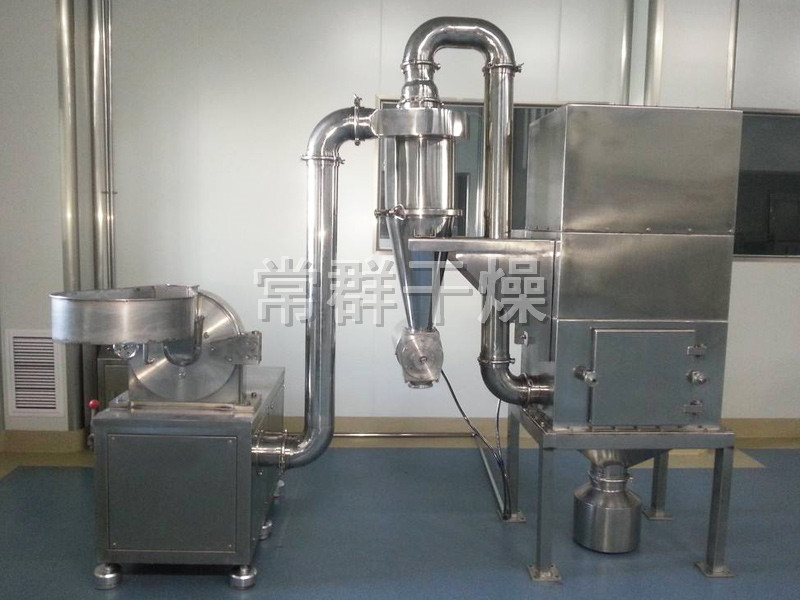 中藥粉碎機 本機由主機、集粉分機器、旋風分離器、電控箱四部分組成。粉碎機為離心風選式,進料粒度在30mm以下,不用破碎可以一次性成粉,產量大,噪音小,溫度低,分級準,收得率高。