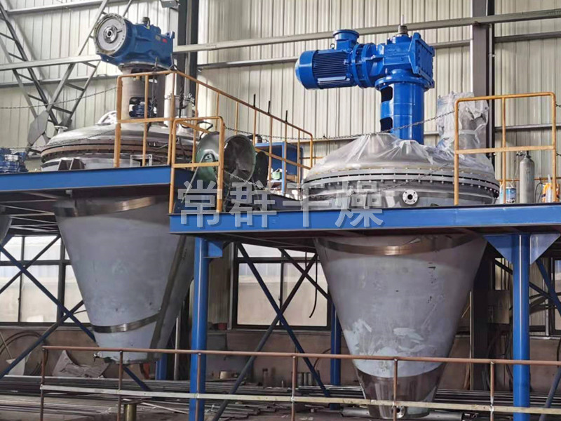 ◆可根據工藝需要調節轉速,當轉速較低時,其干燥作用占主導地位;當轉速較高時。其混合作用占主導地位,因此通過選用此設備,可以將原先需要二種設備才能達到目的,現在可以合二為一,節省成本。